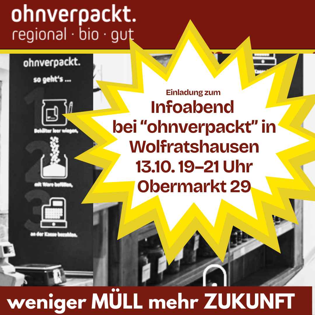 Dann komm am 13.10. von 19–21 Uhr zumInfoabend im ohnverpackt. – regional · bio · gut in Wolfratshausen.