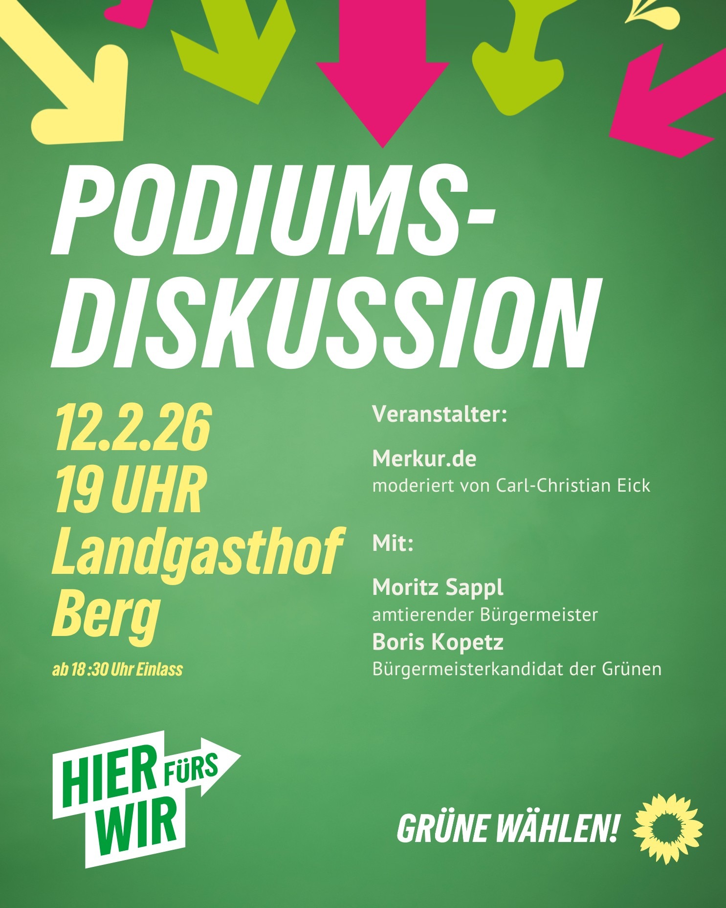 Am 12. Februar um 19 Uhr diskutieren Moritz Sappl (amtierender Bürgermeister) und unser Kandidat Boris Kopetz im Landgasthof Berg über die Zukunft Eurasburgs. Moderiert wird der Abend von Carl-Christian Eick (Merkur.de).