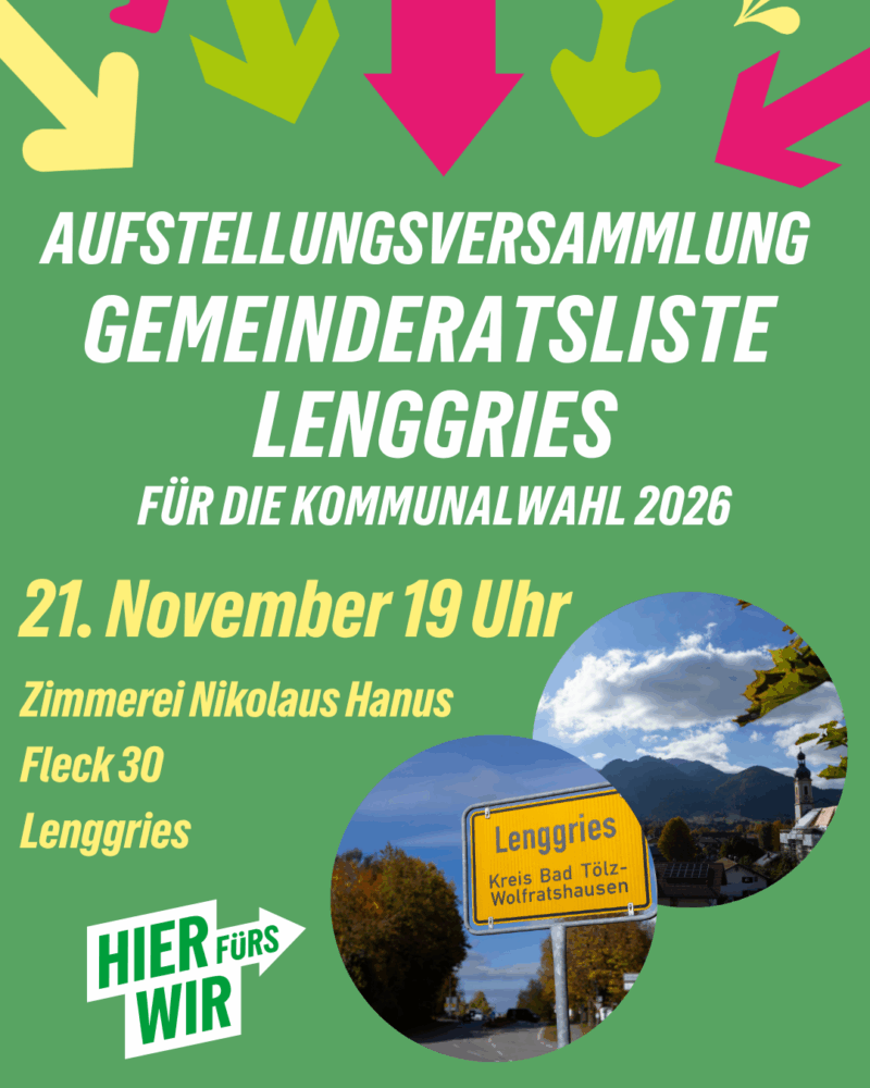 Ganz gleich, ob du aus Lenggries, Gaißach, Arzbach, Wackersberg, der Jachenau oder sonst wo kommst – sei dabei und lass uns zusammen Ideen entwickeln, wie wir die Zukunft aktiv gestalten können!