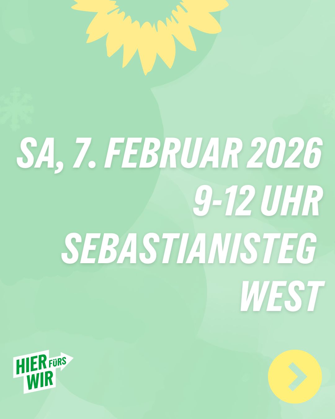 Am Samstag, 7. Februar 2026, sind wir von 9:00 bis 12:00 Uhr am Sebastianisteg West in Wolfratshausen für dich da.