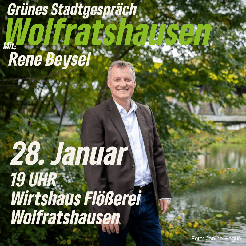 Das Stadtgespräch bietet die Gelegenheit, direkt mit den Grünen vor Ort ins Gespräch zu kommen, Fragen zu stellen und eigene Ideen einzubringen. Außerdem können Interessierte Bürger*innen mit Rene Beysel in den Austausch kommen. Er wird im März als Bürgermeister für Wolfratshausen kandidieren und steht für Fragen und Feedback gerne zur Verfügung! Wir freuen uns auf einen lebendigen Dialog und einen inspirierenden Abend mit dir!