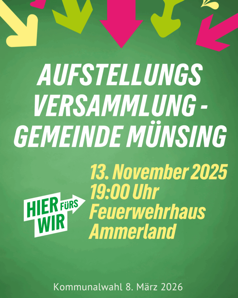 Am 13. November stellen wir die grüne Liste für Münsing auf! Seid dabei, wenn wir gemeinsam entscheiden,